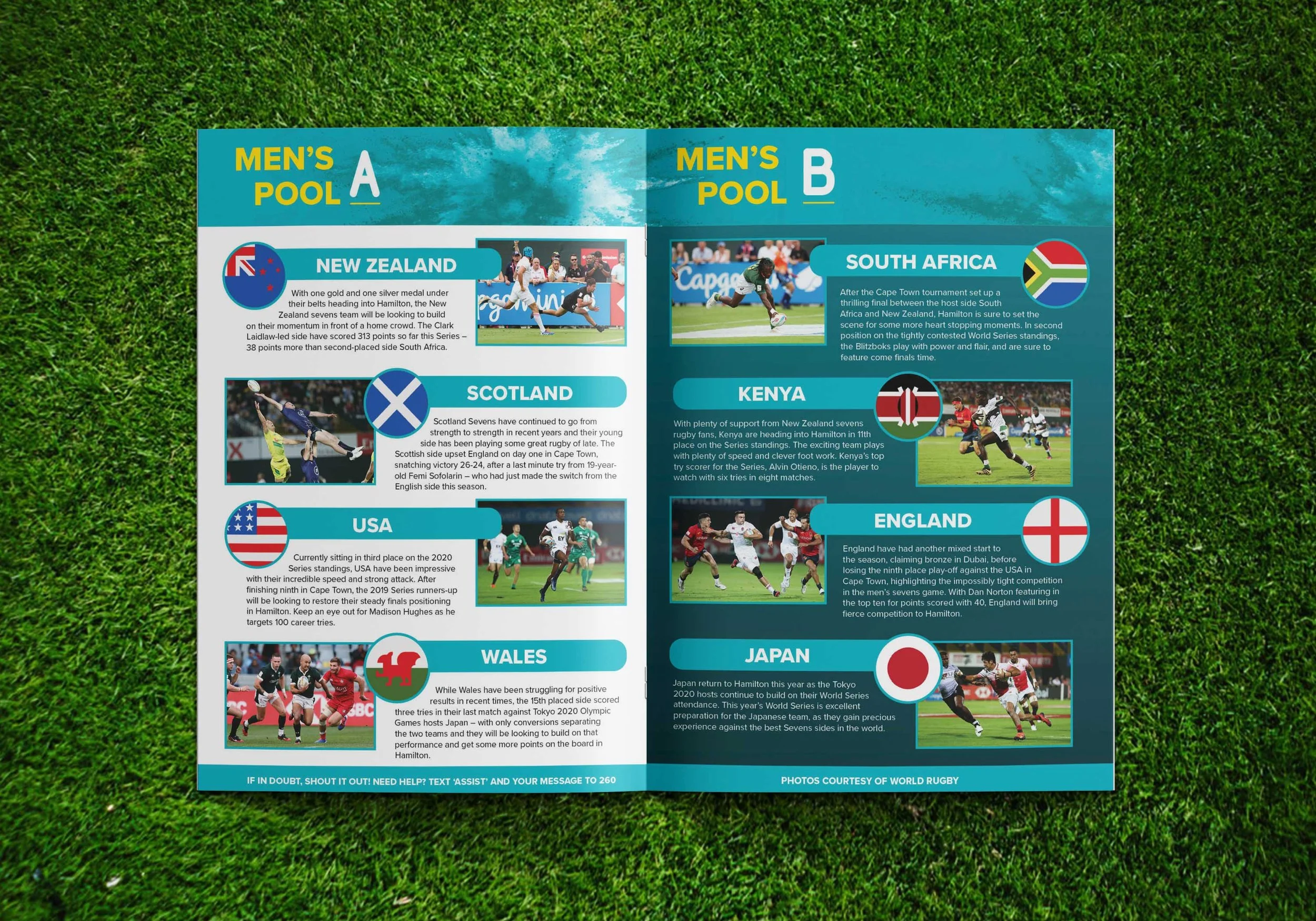 This 48pp booklet was created for the World Rugby Sevens. Distributed to corporate clients, it served as a welcome guide to the event.